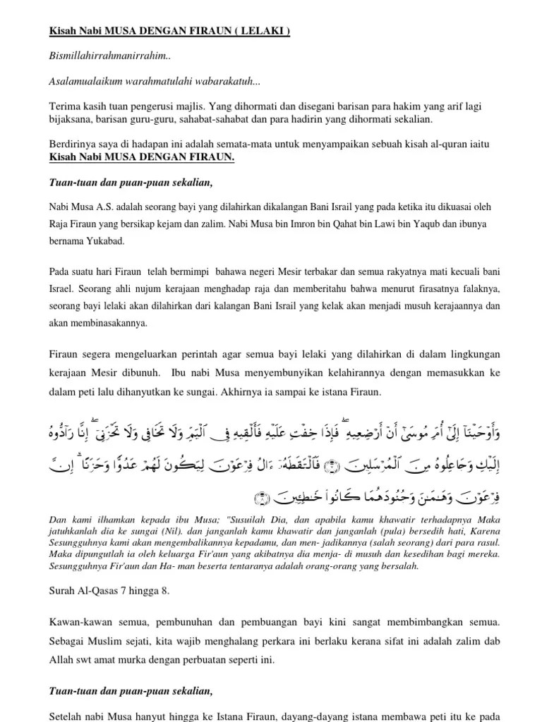 Cerita kisah nabi musa dan firaun. Berikut adalah cerita atau kisah dari nabi musa as. Allah berfirman sungguh firaun telah berbuat sewenang wenang di muka bumi dan menjadikan penduduknya berpecah belah dengan menindas segolongan dari mereka membunuh anak laki laki mereka dan membiarkan hidup anak anak perempuan mereka. Pada saat itu firaun diramalkan akan ditumbangkan oleh seorang anak laki laki. Audio alquran original surat yasin.