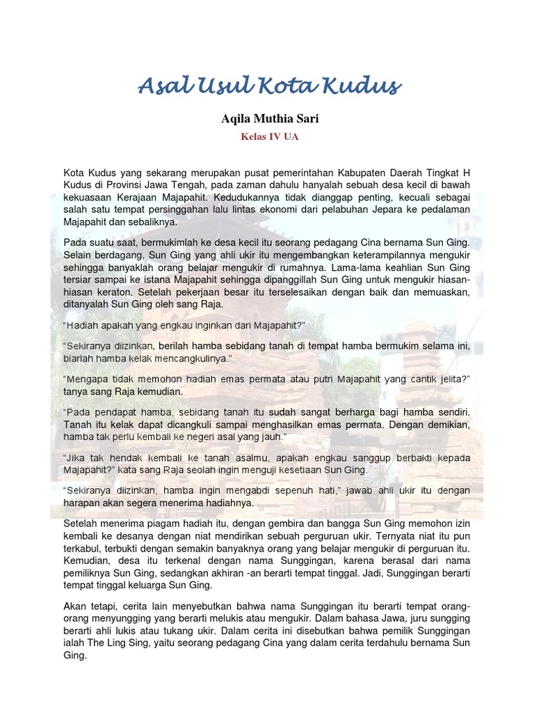 Dia mengajari Orang Islam untuk menghargai agama lain khususnya agama HinduIni disebabkan ketika itu di Kudus. Asal Usul Sejarah Nama Kota Kudus Jawa Tengah. Kuah soto sendiri bening dan biasanya disajikan bersama sambel kacang.