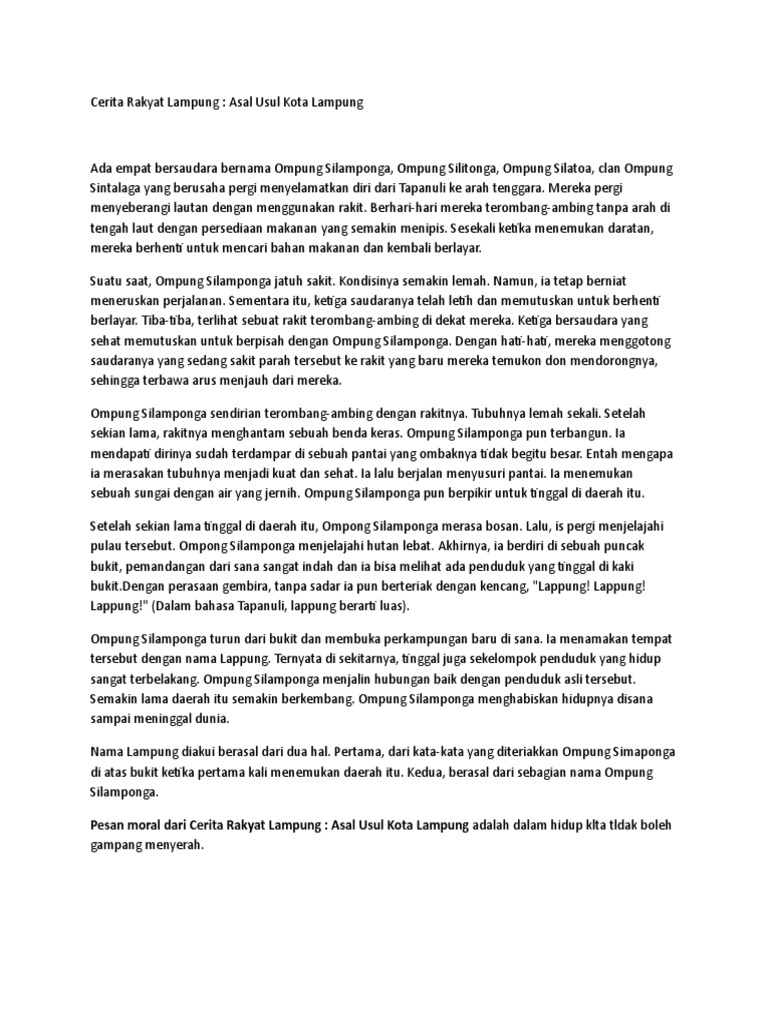 Kisah Si Bungsu Cerita Rakyat Dan Dongeng Lampung Asal Usul Way Linti Cerita Rakyat Dari Lampung Terbaik Bahasa Lampung - Fabel Dalam Bahasa Lampung CERPEN BAHASA LAMPUNG Contoh teks biografi dalam bahasa Lampung dan artinya - Brainlycoid Cerita rakyat nusantara 1 PDF MITOS DAN NILAI DALAM CERITA. Kepala desa tersebut bernama Arya. BAB IV SI PAHIT LIDAH DAN SI MATA EMPAT.