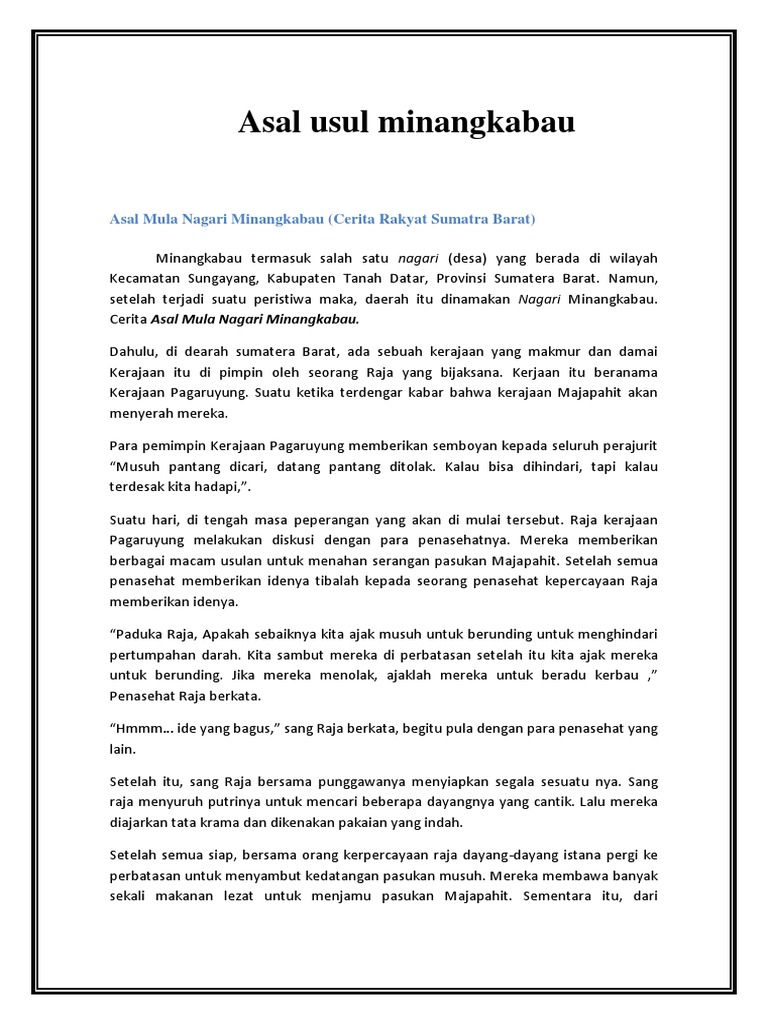 Asal Usul Minangkabau Asal Mula Nagari Minangkabau Cerita Rakyat Sumatra Barat Pdf