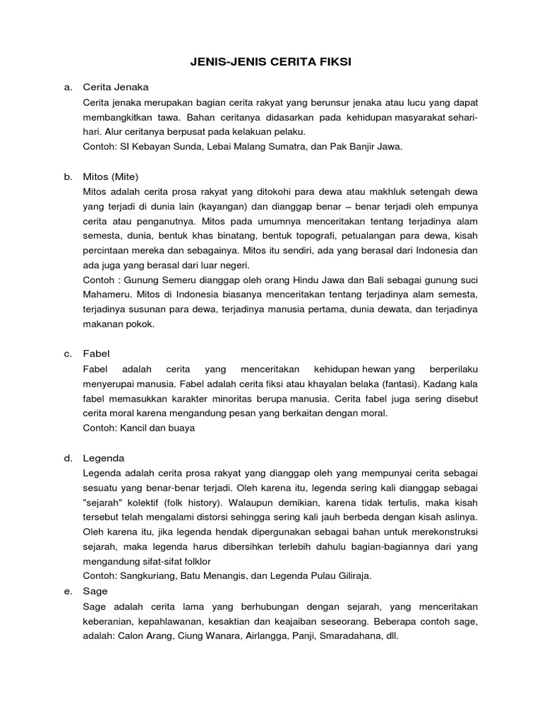 Jenis Jenis Dan Contoh Cerita Fiksi Legenda Fabel Mite Dan Saga Semua Halaman Bobo