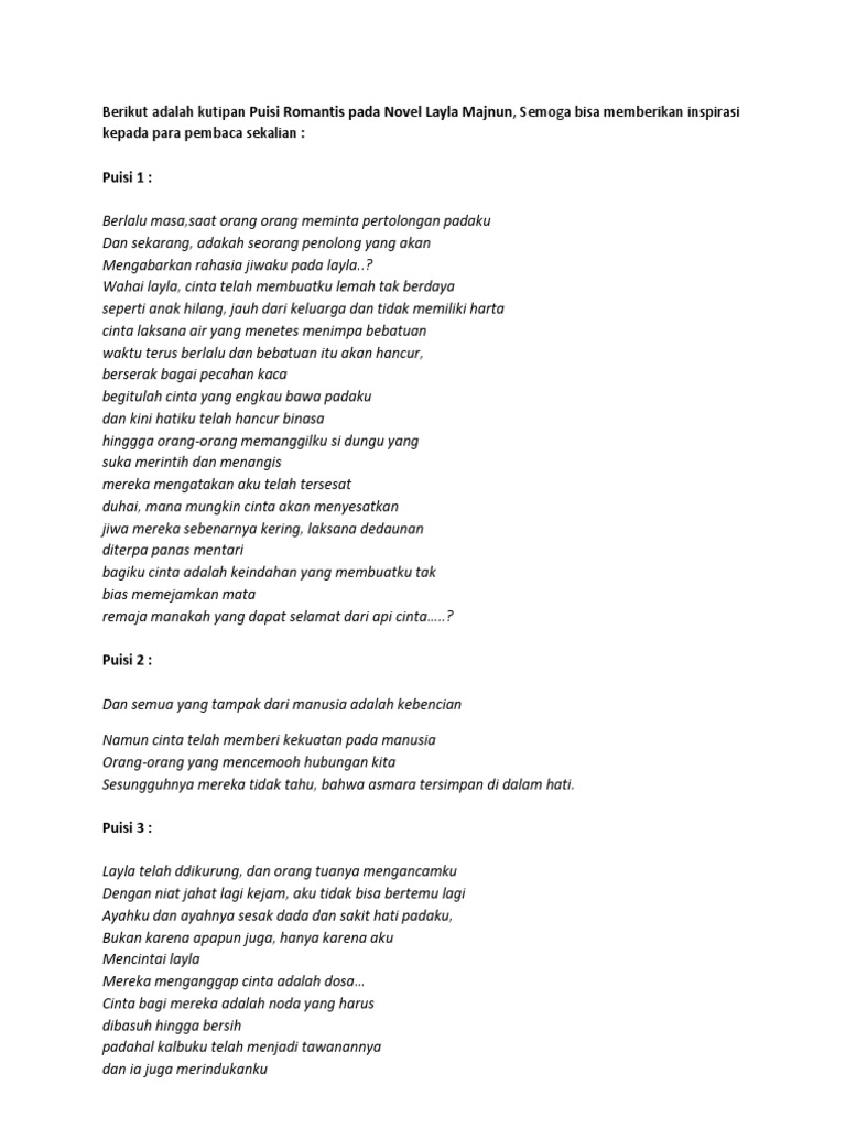Puisi Dari Novel Laila Majnun Laila Qais