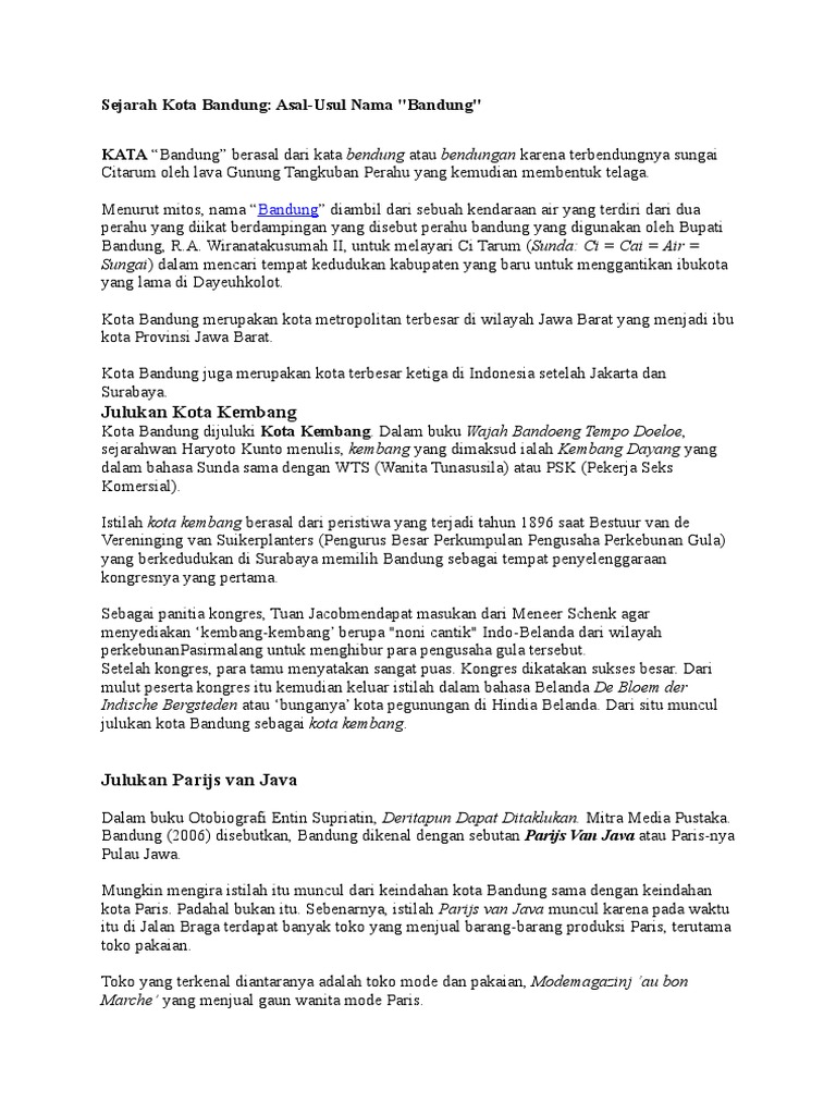 Asal usul dan sejarah kota bandung. Menurut sejarah bendungan Danau Bandung tersebut seluas daerah antara Padalarang sampai Cicalengka 30 km dan daerah antara Gunung Tangkuban Parahu sampai Soreang 50 km. Dalam kisah asal-usul kota Bandung tersedia pelajaran baik yang mampu kami peroleh lo.